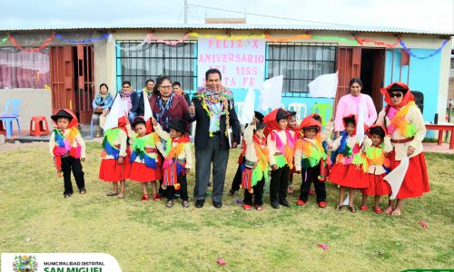 El alcalde de la Municipalidad Distrital de San Miguel, Sr. Cristin Mamani Mamani junto a los r ..
