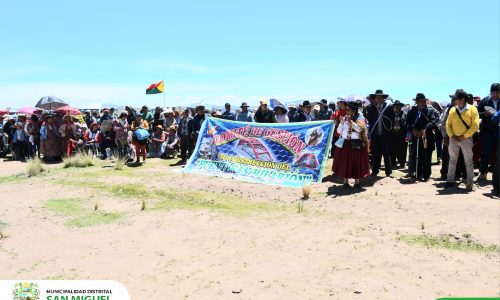 El alcalde de la Municipalidad distrital de San Miguel, sr. Cristin Mamani Mamani, acompañado de sus regidores, funcionarios e instituciones educativas, realizó la presentación oficial e izamiento del nuevo símbolo cívico distrital Bandera del distrito de San Miguel.