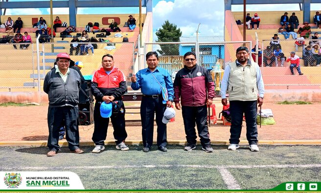 En un acto de apoyo y compromiso con el deporte local, el Alcalde de la Municipalidad Distrital de San Miguel, Sr. Cristin Mamani Mamani, entregó dos trofeos en el evento deportivo Relámpago Copa Perú San Miguel, celebrado el ultimo domingo. Acompañado del Subgerente de Cultura y Deportes, Lic. Pedro Mamani Zela, el Alcalde asistió a los partidos en el Estadio Politécnico Regional Los Andes.